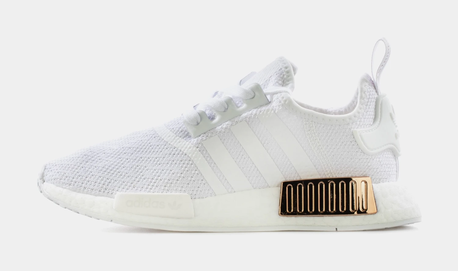 The Adidas NMD R1 takes Adidas’ latest and greatest technologies and combined them to create this sneaker. Featuring a white and copper colorway, metallic copper accent along the heel, textile and mesh upper, springy full length Boost midsole, durable rubber outsole, heel pull tab, lace up closure, iconic three stripes displayed on either side of the shoes, Adidas’ logo along the side and tongue patch to complete the look.