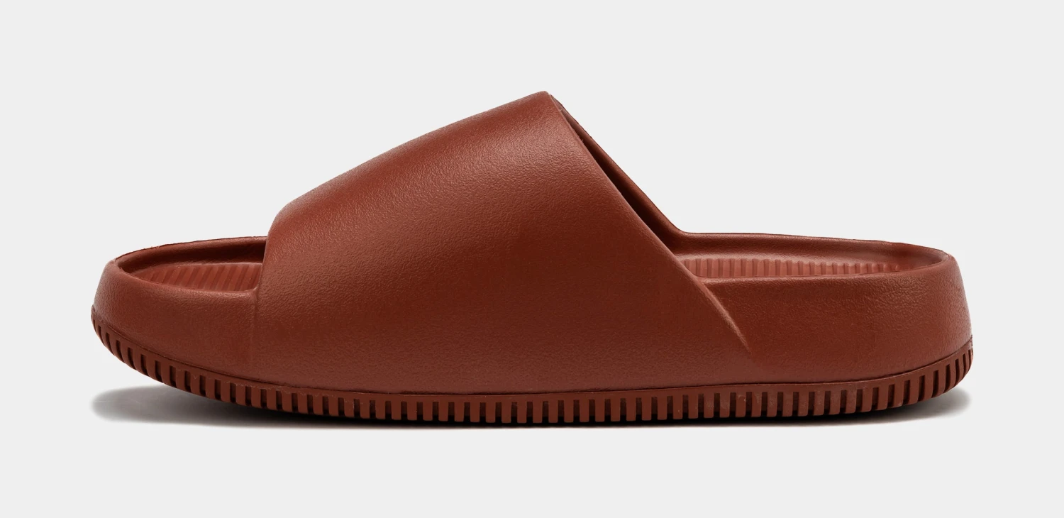 The Calm Slide offers a fuss-free slip-on experience with its Rugged Orange shade. Constructed using pliable foam, this simple sandal boasts a wide, comfy strap on the upper embellished with debossed Nike Swoosh branding along its side. The footbed showcases a larger Swoosh, textured to securely cradle the foot. Its seamless design is grounded by a full-length rubber outsole, ensuring reliable traction on various surfaces, whether wet or dry.