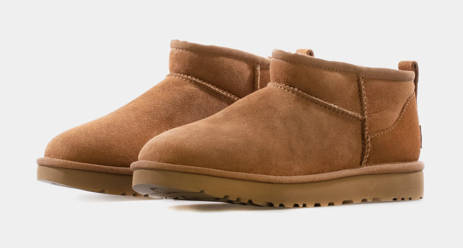 The Classic Ultra Mini updates our most iconic silhouette with a lower shaft height, adding easy on-off and enhanced versatility. Pre-treated to keep it looking better for longer, this Classic features everything you love about the original: signature sheepskin, ultra-soft UGGplush™ lining, and a flexible, lightweight sole. Wear with virtually anything – the styling options are endless.